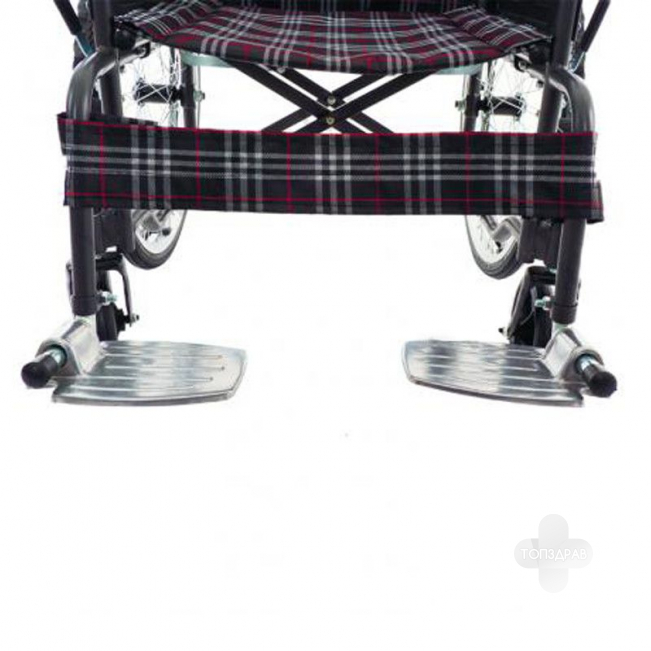 Комфортное сиденье из клетчатого полиэстера с водоотталкивающей пропиткой изнутри, мягкие подлокотники, регулируемые в длине под голень подножки с поднимающимися опорами и рифлёные приводные обода для непривыкших, или ослабленных пациентов.