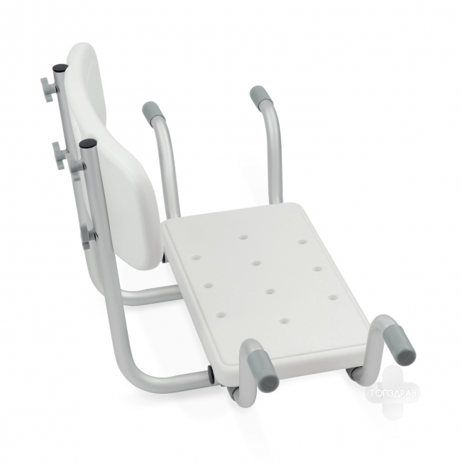 Сидение для ванны, предназначено для ухода за больными в условиях стационара или в домашних условиях. Рама выполнена из анодированного алюминия и не подвергается коррозии. Сидение выполнено из высокопрочного полиэтилена с дренажными отверстиями для стока воды и покрыто бесцветным лаком.